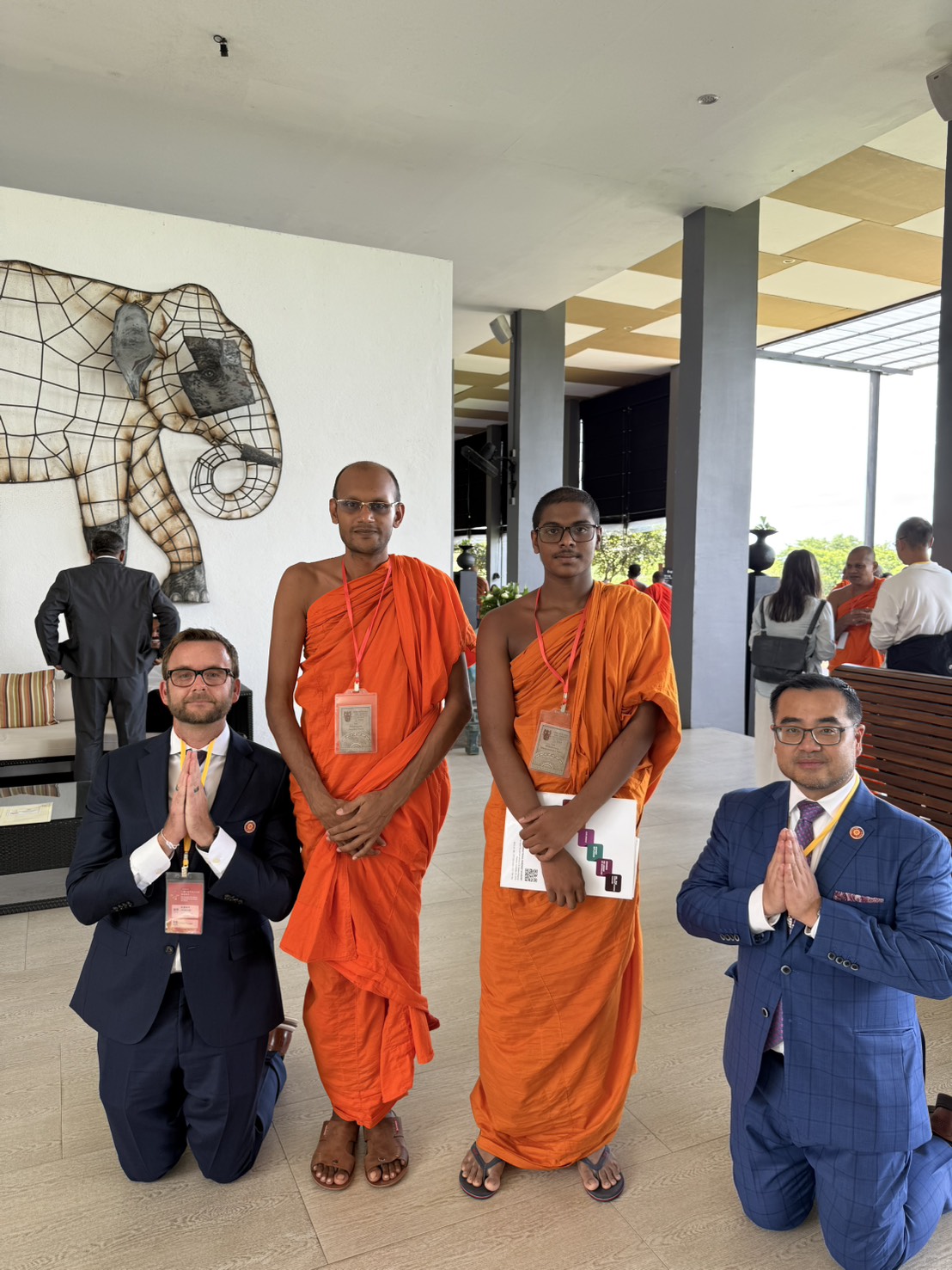 來自美國毗盧禪寺的佛教專業翻譯團隊也隨團參與此次大會。該團隊由十餘位碩士、博士組成,歷經多年嚴格培訓,專精佛典翻譯與多國語言教義詮釋。並且毗盧禪寺方丈 妙參大和尚(Most Ven. Shih Miao Tsan)所著之《六祖壇經直解》已被翻譯為僧伽羅語,並於2024年正式納入斯里蘭卡多所大學的佛教課程中,創下南傳國家首次將漢傳經典列為官方教科書的歷史先例。